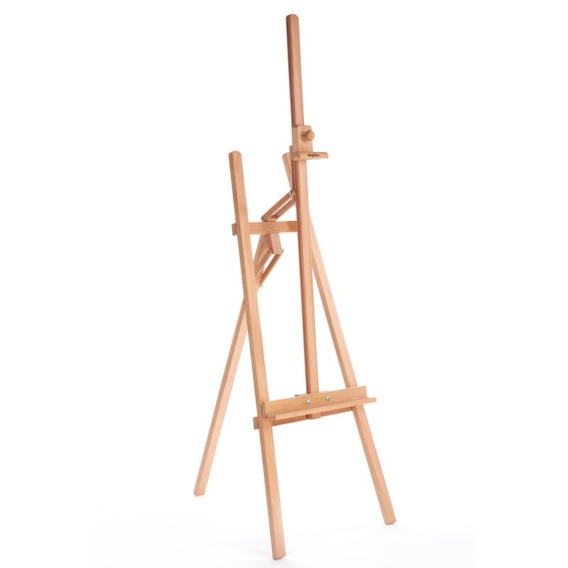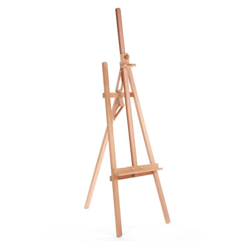 Мольберт Лира с наклонной штангой. Изготовлен из бука, пропитанного специальным составом. Простая и удобная система регулировки наклона мольберта и высоты положения планки. Угол наклона штанги 30 градусов. Прекрасно подходит для любого вида живописи. Технические характеристики: Высота — 170 см, Ширина — 54 см, Масса нетто — 4,2 кг.