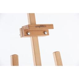 Лира Классика - это студийный деревянный мольберт с неподвижной штангой (мачтой), который обладает достаточной прочностью и долговечностью, хорошо выглядит и обладает необходимой функциональностью.Мольберт относится к типу Академия и имеет облегченную конструкцию (сечение бруска меньше, чем в других мольбертах этого производителя).Общие размеры мольберта - 51х171 см, вес - 2,9 кг. Пропитан специальным составом для защиты древесины (дополнительного покрытия не требует). Нижняя планка регулируется по высоте, расстояние от пола - от 46 до 95 см.