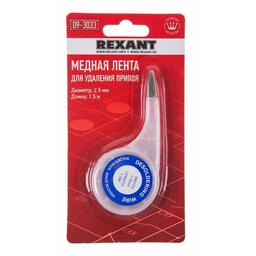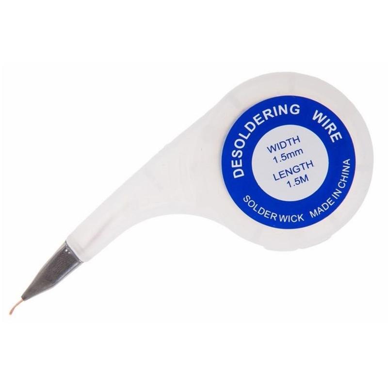 Медная лента для удаления припоя представляет собой плетёную из тонкой медной проволоки оплётку, покрытую специальным безотмывным флюсом.Такая медная лента применяется для удаления припоя с печатных плат при ремонтных работах. После её применения отпадает необходимость в чистке контактных площадок платы и контактов радиодеталей.Удобный бокс сделает использование ленты более комфортным.Порядок работы:Прислоняем медную оплетку к поверхности припоя;Разогретым паяльником размягчаем излишний припой.Мягкоплавкий металл впитывается в оплетку.Основные характеристики:Диаметр ленты: 2.5 ммДлина ленты: 1.5 мЭто наиболее эффективный и часто применяемый способ удаления излишков припоя.