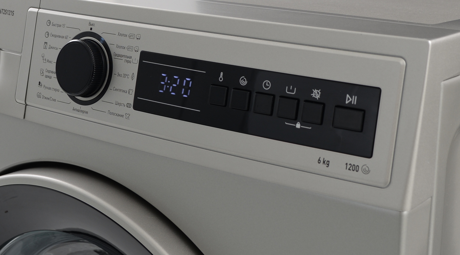 Стиральная машина на 6 кг и со скоростью отжима белья 1200 об/мин. Класс энергопотребления А+++.