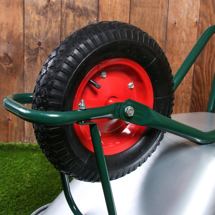 Тачка строительная, одноколёсная: объём 100 л, груз/п 180 кг, пневмоколесо 4.00-8, кузов 0,8 мм