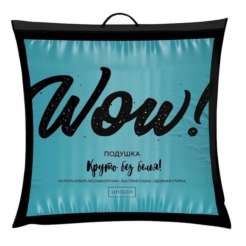 Подушка Unison 70х70 см файбер/миткаль со стежкой и съемным чехлом бирюзовая