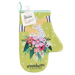Прихватка-варежка «Цветочного настроения». Размер товара: 20×28 см. Плотность наполнителя : 250 г/кв.м. Материал наполнителя: ватин. Цвет: зеленый. Без индивидуальной упаковки. Форма: фигурная. С рисунком.