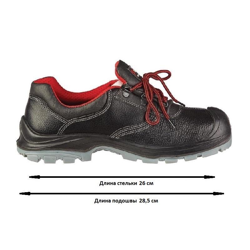 Полуботинки Lider черного цвета на шнуровке выполнены из натуральной кожи и искусственных материалов. Подошва маслобензостойкая, кислотощелочестойкая, противоскользящая, двухслойная: полиуретан и термополиуретан с самоочищающимся профилем ходовой поверхности. Промежуточный слой из полиуретана обладает амортизирующими свойствами, гасит ударные нагрузки, а также придает обуви легкость, комфортность и повышенные теплозащитные свойства. Ходовой слой изготовлен из износостойкого термопластичного полиуретана ТПУ с улучшенным сопротивлением скольжению, обладающего стойкостью к деформациям и стиранию. Глухой клапан исключает попадание внутрь влаги, пыли и мелких предметов. Удобная колодка анатомической формы дает возможность работать целый день, не испытывая дискомфорта и усталости. На полуботинках присутствует светоотражающая вставка. Метод крепления подошвы: литьевой. Подносок: металлический, защищает от ударов силой до 200 Дж. Соответствуют ТР ТС 019/2011; ГОСТ 12.4.137–2001; 28507–99; Р 12.4.187–97. Гарантийный срок — 70 дней.
