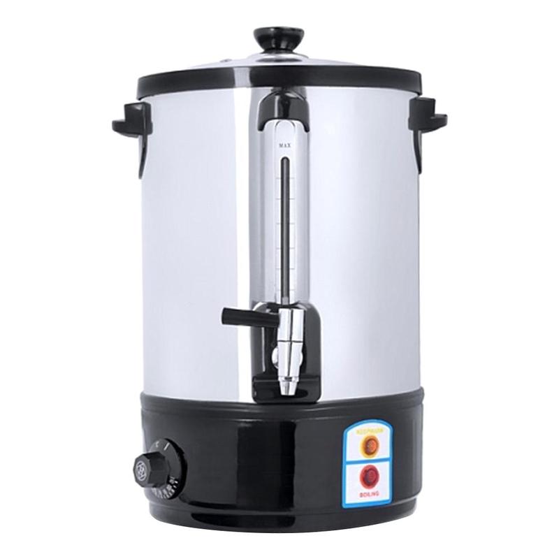 Данный кипятильник идеально подходит для кипячения воды, хранения и розлива горячей воды при приготовлении горячих напитков (растворимого кофе, чая, горячего шоколада, бульона и т.п.), а также приготовления глинтвейна. Кипятильник работает в сети с напряжением 220 вольт, что позволяет его использовать почти везде, где есть бытовая розетка с заземлением. Терморегулятор с диапазоном регулировки температуры от 30 до 110°C позволяет поддерживать постоянную заданную температуру воды. Корпус, выполненный из высококачественной нержавеющей стали марки 201/ 304, обеспечивает жесткость конструкции и долгий срок службы. Нагревательный элемент (тэн) в этой модели закрыт, что позволяет уберечь его от накипи.