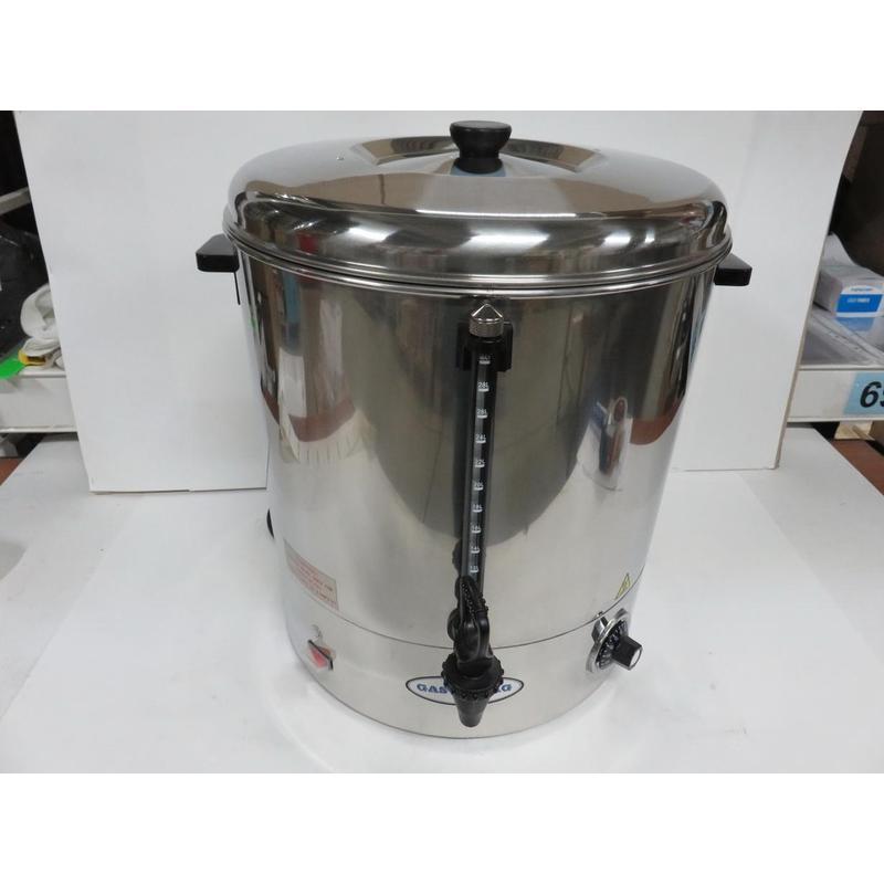 Кипятильник электрический наливной GASTRORAG DK-PU-300 не требует подключения к водопроводу и обеспечит вас горячей водой повсюду, где есть электрические розетки 220 В. Емкость резервуара кипятильника составляет 30 л, что делает его идеальным для столовых и кафе средней пропускной способности. Время кипячения полного резервуара составляет 110-130 минут в зависимости от начальной температуры воды. После закипания воды в целях экономии электроэнергии оборудование автоматически переходит в режим подогрева (периодического включения и выключения для поддержания температуры). Заливной кипятильник GASTRORAG DK-PU-300 - это оборудование класса люкс с прочным и гигиеничным толстостенным корпусом, полностью изготовленным из высококачественной нержавеющей стали AISI 304. Оборудование оснащено регулируемым термостатом, который позволяет задавать температуру воды в диапазоне 30-110°C, и защитой от сухого включения. Закрытый ТЭН упрощает процедуру ухода и очистки от накипи. Розлив воды осуществляется через пластмассовый кран усиленной конструкции, расположенный в нижней части устройства. Для удобства пользователя рычаг крана имеет два положения: - постоянно открыто для непрерывного слива кипятка,- автоматическое прекращение слива кипятка после отпускания рычага. Уровень воды в резервуаре легко контролировать по показаниям мерного стекла.