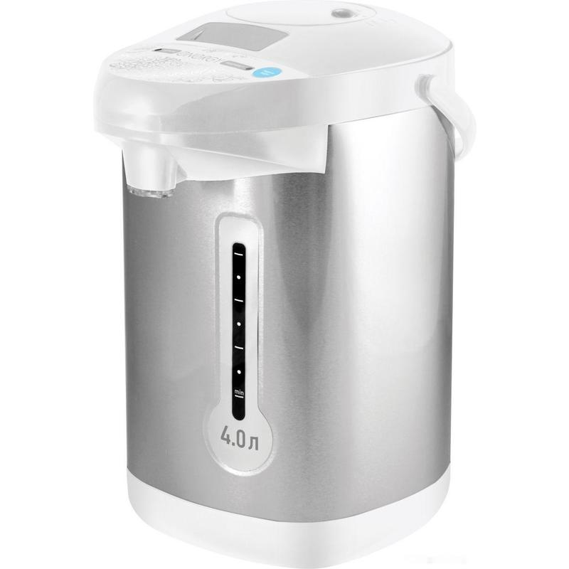 Energy TP-619 — чайник-термос электрическийсеребристо-белого цвета с автоматической и ручной подачей воды. Термопот EnergyTP-619 с колбой и корпусом из нержавеющей стали имеет 3 способа подачи воды: автоматический (нажатием кнопки, нажатием чашкой) и ручной. Объем 4 литра. Подойдет для дома и дачи. Мощность у термопота всего 750 Вт (в режиме поддержания температуры 35 Вт), что очень удобно на даче, где чайник с большой мощностью может составить проблему для электросети. Обладает функциями: быстрого кипячения воды, повторного кипячения, поддержания температуры.