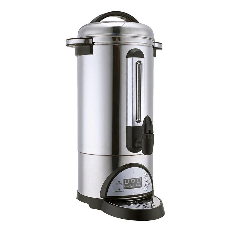 Кипятильник Gastrorag DK-DIS-200 не требует подключения к водопроводу и обеспечит вас горячей водой повсюду, где есть электрические розетки 220 В. Емкость резервуара кипятильника составляет 20 л, что делает его идеальным для столовых и кафе средней пропускной способности. Благодаря стильному современному дизайну оборудование идеально впишется в интерьер торгового зала.Время кипячения полного резервуара составляет 70-80 минут в зависимости от начальной температуры воды. После закипания воды в целях экономии электроэнергии оборудование автоматически переходит в режим подогрева (периодического включения и выключения для поддержания температуры).Заливной кипятильник Gastrorag DK-DIS-200 имеет прочный и гигиеничный корпус из нержавеющей стали с элементами из черной пластмассы и удобными ручками для переноски. Двойные стенки с термоизоляцией способствуют сохранению тепла и повышают экономичность оборудования.Электрокипятильник Gastrorag DK-DIS-200 оснащен регулируемым электронным термостатом с ЖК-дисплеем, который позволяет задавать температуру воды в широком диапазоне, и защитой от 'сухого' включения. Закрытый ТЭН упрощает процедуру ухода и очистки от накипи. Розлив воды осуществляется через пластмассовый кран, расположенный в нижней части устройства.