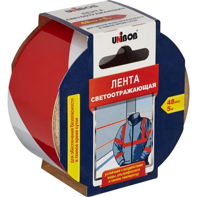 Сигнальная клейкая лента светоотражающая Unibob красная/белая 48 мм x 5 м
