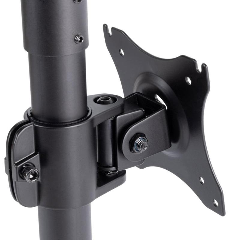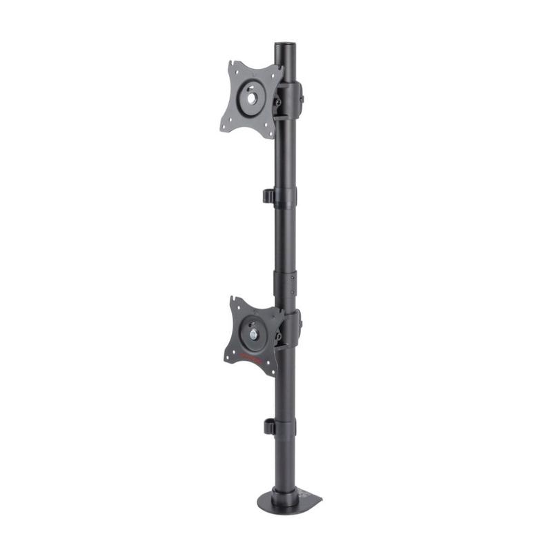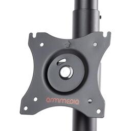 Настольный наклонно-поворотный кронштейн Arm Media LCD-T43 изготовлен из стали и способен выдержать серьезные нагрузки до 20 кг (2×10кг). Кронштейн предназначен для установки двух мониторов с диагональю экрана от 15 до 32 дюймов (38-81 см), которые можно вращать на 360° в горизонтальной плоскости, наклонять вверх и вниз в диапазоне от +45° до −45°, поворачивать влево и вправо на +45/-45°. Также существует возможность отрегулировать крепления по высоте и два способа установки на Ваш выбор — за край стола и на поверхности стола. Все это обеспечивает максимально комфортный угол обзора, что несомненно является отличным решением для геймеров, дизайнеров, программистов и их рабочих зон.Мы также предусмотрели кабель-канал, позволяющий аккуратно вывести все необходимые соединительные кабеля и шнуры.Максимальные посадочные отверстия по горизонтали — 100 мм, по вертикали — 100 мм. Поддерживаемые стандарты VESA: 75×75, 100×100.