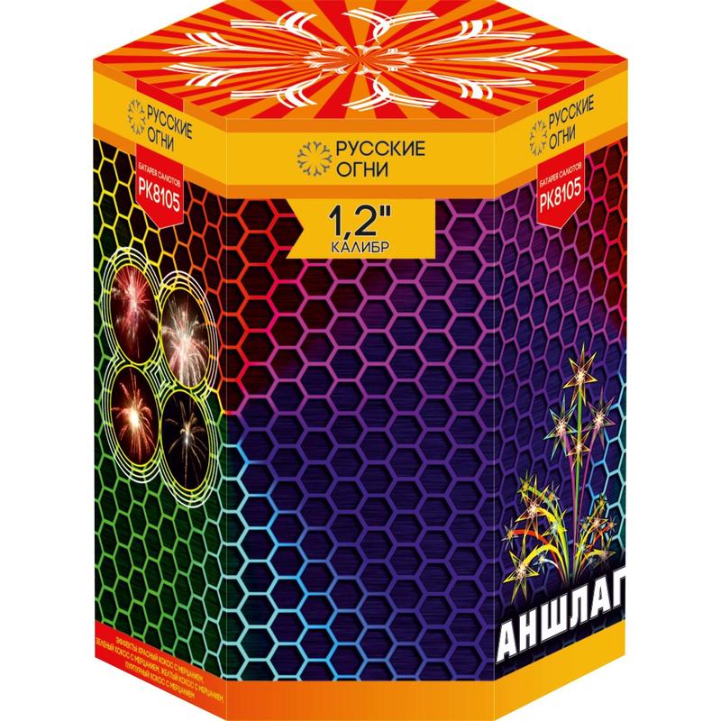Салют батарея Русские огни Аншлаг. Эффект:- красный хвост - в красно-золотистые нити с кокосом и белым мерцанием;- зеленый хвост - в зелено-золотистые нити с кокосом и красным мерцанием;- желтый хвост - в желто-золотистые нити с кокосом и зеленым мерцанием;- пурпурный хвост - в пурпурно-золотистые нити с золотым кокосом.Девятнадцать залпов.