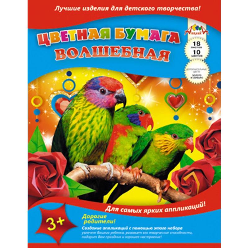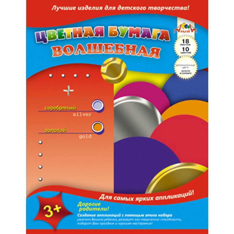 Набор офсетной (10 цветов на 18 листах) цветной бумаги подходит для создания аппликаций, оригами, изготовления поделок. Работа с цветной бумагой способствует развитию мелкой моторики у детей. В наборе листы размером 200×260 мм, плотность — 50 г/кв.м. Набор упакован в обложку из офсетной бумаги. Тип крепления — на скрепке. Цвета в наборе: желтый, красный, черный, розовый, зеленый, фиолетовый, синий, малиновый, золотой, серебряный.Внимание! Товар поставляется в нескольких вариантах дизайна упаковки (без возможности выбора).