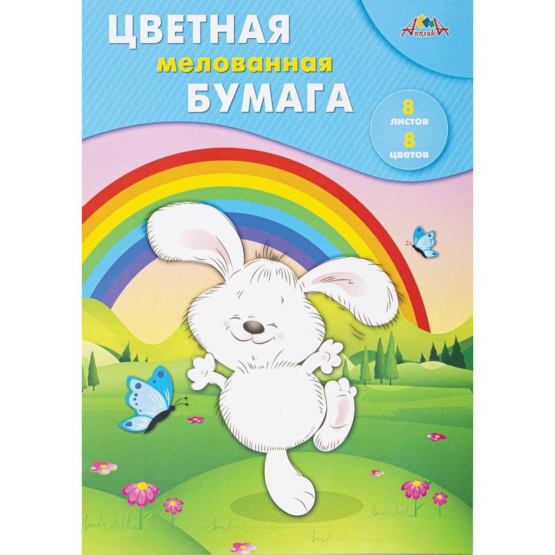 Бумага цветная Апплика (А4, 8 листов, 8 цветов, мелованная)