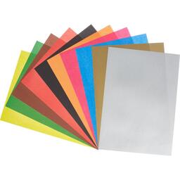 Набор офсетной (8 цветов на 8 листах) и мелованной (2 цвета на 2 листах) цветной бумаги подходит для создания аппликаций, изготовления поделок. Работа с цветной бумагой способствует развитию мелкой моторики у детей. В наборе листы размером 203×283 мм, плотность — 80 г/кв.м. Набор упакован в папку, сделанную из плотного картона. Цвета в наборе: желтый, зеленый, коричневый, красный, малиновый, оранжевый, синий, черный, золото, серебро.Внимание! Товар поставляется в нескольких вариантах дизайна упаковки (без возможности выбора).
