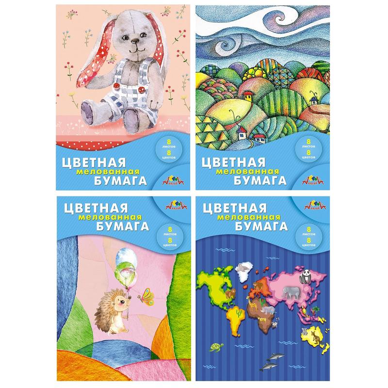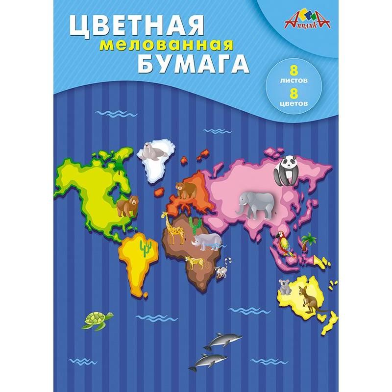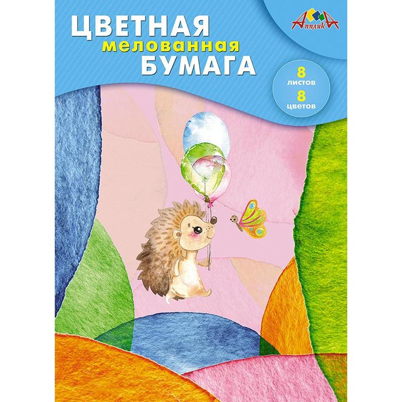 Бумага цветная Апплика (А4, 8 листов, 8 цветов, мелованная, двусторонняя)