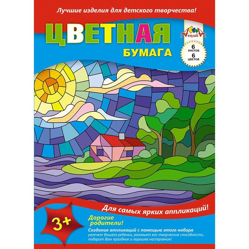 Бумага цветная Апплика Солнечный домик (А4, 6 листов, 6 цветов, офсетная)