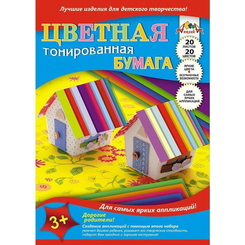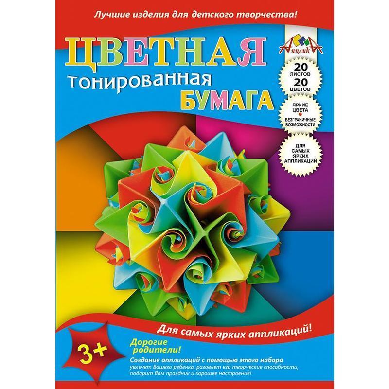 Бумага цветная Апплика (А4, 20 листов, 20 цветов, офсетная, тонированная)