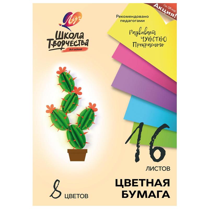 Бумага цветная Луч Школа творчества (А4, 16 листов, 8 цветов, немелованная)
