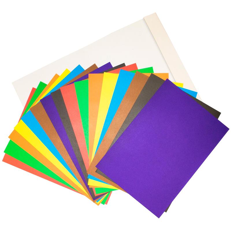 16 листов (8 цветов) цветной бумаги из качественно прокрашенной офсетной бумаги плотностью 70г/кв.м. Набор упакован в папку из высококачественного мелованного картона плотностью 200г/кв.м. Размер А4 формата — 210×297 мм.Транспортная упаковка — гофрокороб.