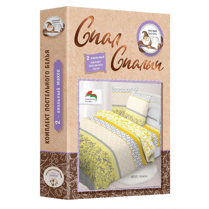 Постельное белье «Спал Спалыч Эстелла» (2-спальное с европростыней, бязь).В комплект 2-х спального постельного белья входят:— простынь 215×220 см;— пододеяльник 175×215 см;— 2 наволочки 70×70 см.Коллекция «Спал Спалыч» из высококачественной белорусской хлопчатобумажной бязи. Ткань прошла процедуру обработки по технологии Perfect Way: мягчение, каландрирование (прокатывание ткани между горячими валами) благодаря чему ткань приобретает гладкость и шелковистый блеск. Процесс превращает круглые нити в плоские, придавая ткани серебристый блеск (эффект «лаке»). Белоруссия работает по ГОСТам, что строжайше контролируется на государственном уровне. Коллекция дизайнов отличается особенным характером и разнообразием. Ткань — бязь (100% хлопок), плотность 125 г/кв.м, имеет сертификат Oeko-tex 100 — безопасный текстиль.Рекомендации по уходу: машинная стирка при температуре не выше 40°С, не отбеливать.Упаковка: ПВХ-конверт с клейким краем с жестким картонным вкладышем.