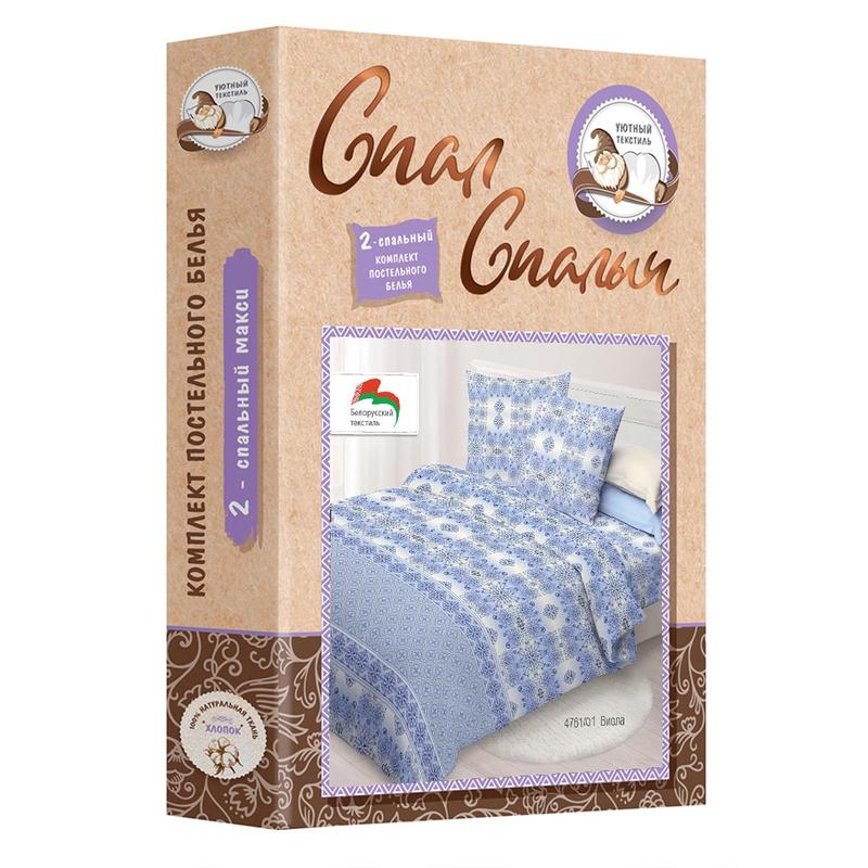 В 2-спальный комплект входят: — простыня 215×220 см; — 2 наволочки 70×70 см; — пододеяльник 175×215 см. Постельное белье «Виола» от торговой марки «Спал Спалыч» из высококачественной хлопчатобумажной бязи производства Белоруссии (сам комплект произведен в России). Ткань прошла процедуру обработки по технологии Perfect Way: мягчение, каландрирование (прокатывание ткани между горячими валами), благодаря чему ткань приобретает гладкость и шелковистый блеск. Процесс превращает круглые нити в плоские, придавая ткани серебристый блеск (эффект «лаке»). Белоруссия работает по ГОСТам, что строжайше контролируется на государственном уровне. Информационный вкладыш с подробным описанием ткани вкладывается в комплект с обратной стороны. Упаковка: пакет ПВХ.