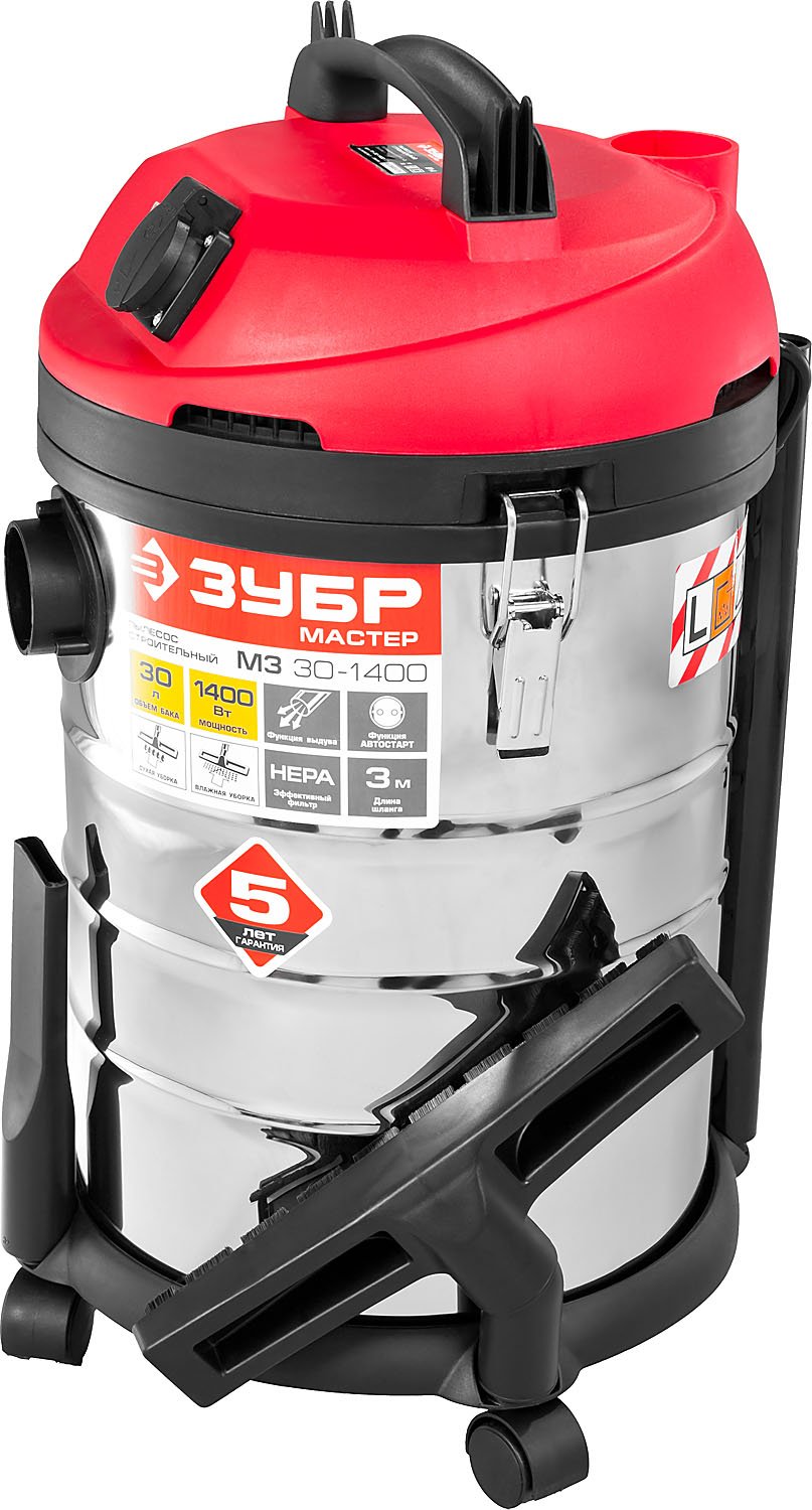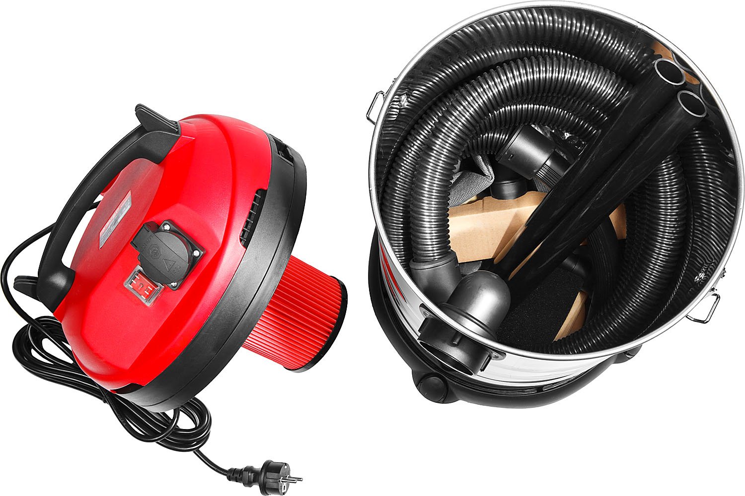 Комплект поставкиПылесос, бумажный одноразовый мешок, тканевый мешок, фильтр HEPA, фильтр для влажной уборки, пластиковый гофрошланг, трубка составная, насадка универсальная, насадка щелевая, переходник для подключения к инструменту, колесо, руководство по эксплуатации