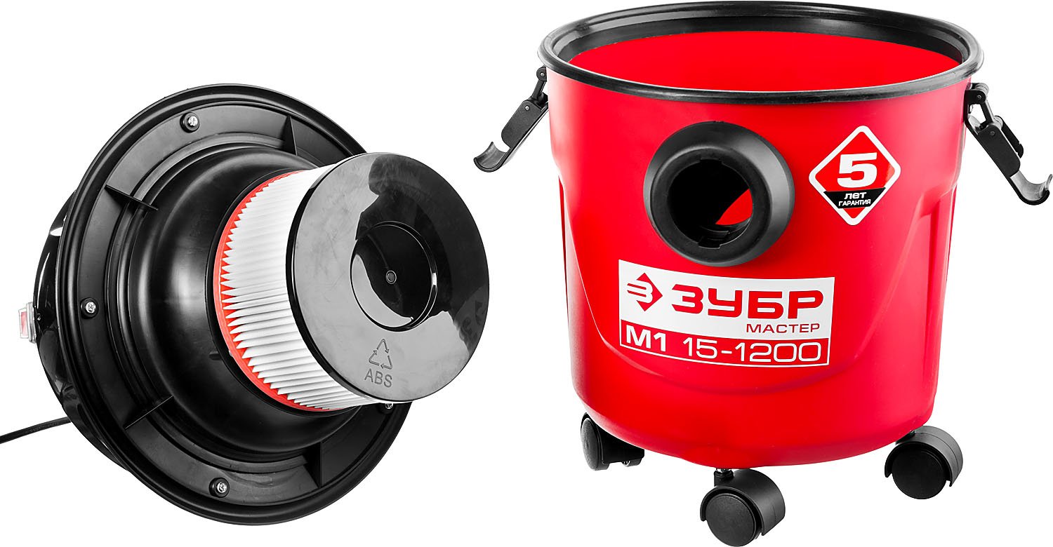 Пылесос хозяйственный для сухой и влажной уборки ЗУБР МАСТЕР, ПУ-15-1200 М1