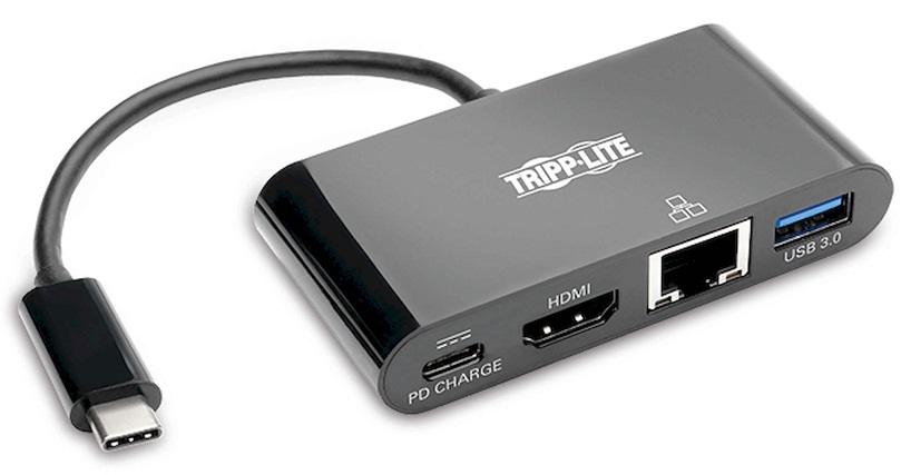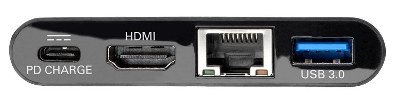 Многопортовый адаптер USB-C: 4K HDMI, с портом USB-A, Gbe и PD Charging, HDCP. Обеспечивает планшет, портативный компьютер, ноутбук, смартфон или ПК портами 4K HDMI, USB-A, USB-C PD Charging и Gigabit Ethernet.