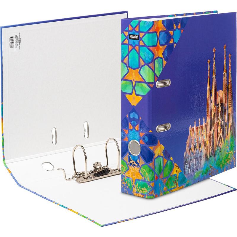 Папка-регистратор Attache Selection Travel Spain имеет ширину корешка 75 мм.Изготовлена из картона и ламинированной бумаги. Материал внутреннего покрытия: бумага. Арочный механизм произведен в Чехии. Папка вертикальная, вмещает до 480 листов.