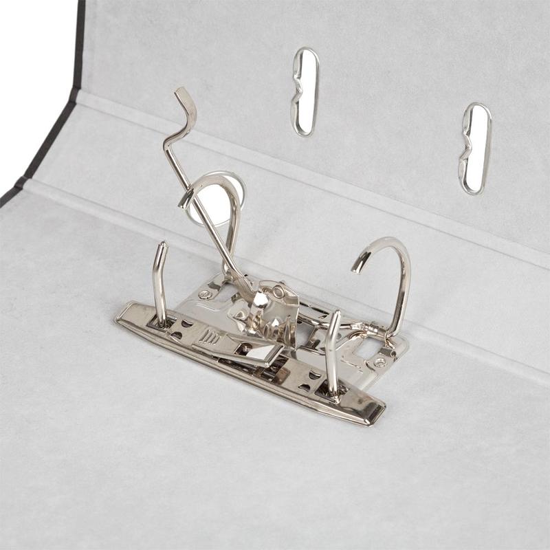 Папка-регистратор с арочным механизмом Attache формата А4 изготовлена из плотного картона, покрытого прочной бумагой черного цвета. Позволяет хранить большое количество документов. Механизм подшивания — металлический арочный, произведен в Чехии.. Нижние края папки защищены металлическим кантом. На корешке шириной 50 мм есть кольцо для удобного захвата и наклеенная этикетка. Папка-регистратор Attache вмещает до 350 листов стандартной плотности.