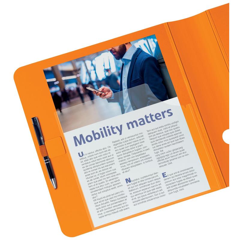Идеальное сочетание высокого качества и современного дизайна. Папка-регистратор выполнена в двух стильных цветах: сером и ранжевом, а благодаря легкому материалу и эргономичному дизайну они удивительно удобны в использовании даже на ходу. Папка формата A4, с внутренними карманами для хранения отдельных документов, с удобным отверстием для пальца и табличкой для маркировки.— Легкий и прочный материал полифом, поверхность с рельефным тиснением;— Запатентованный механизм с раскрытием рычага на 180 градусов: раскрытие на 50 шире, заполнение папки на 20 быстрее;— Стильная застежка на резинке для надежной транспортировки документов;— Округлый корешок и держатель для ручки для удобного использования на ходу;— Ширина корешка 82 мм;— Вместимость 500 листов формата A4 (80 г/кв.м);— 5 лет гарантии на механизм;— Габаритные размеры 82×318×312 мм;— Вес 0,51.