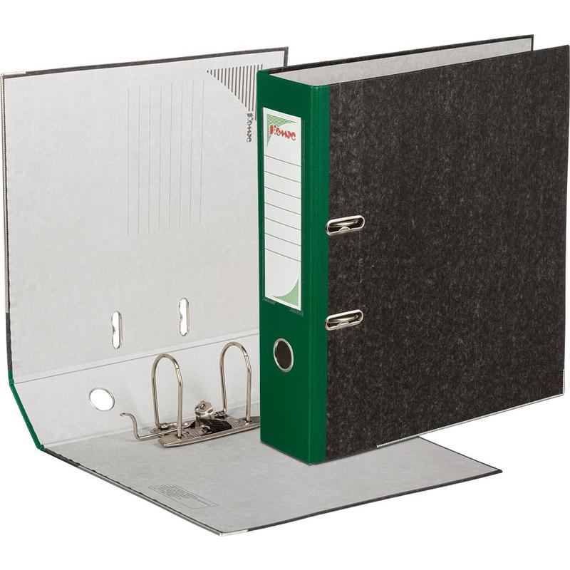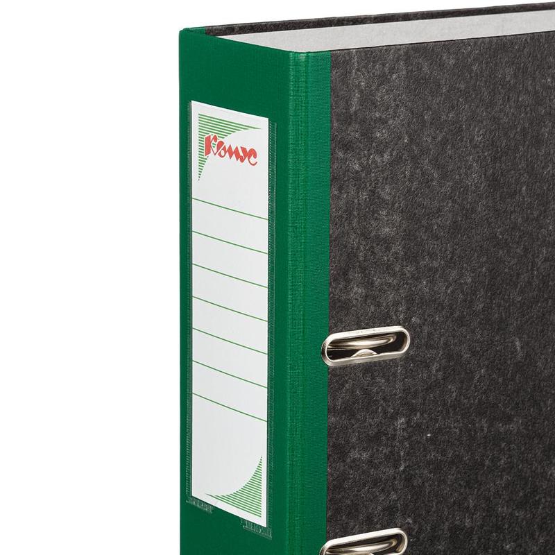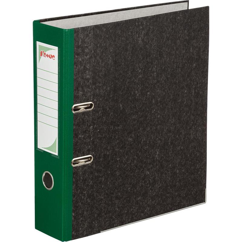 Папка-регистратор Комус 80 мм черная мрамор/зеленый корешок