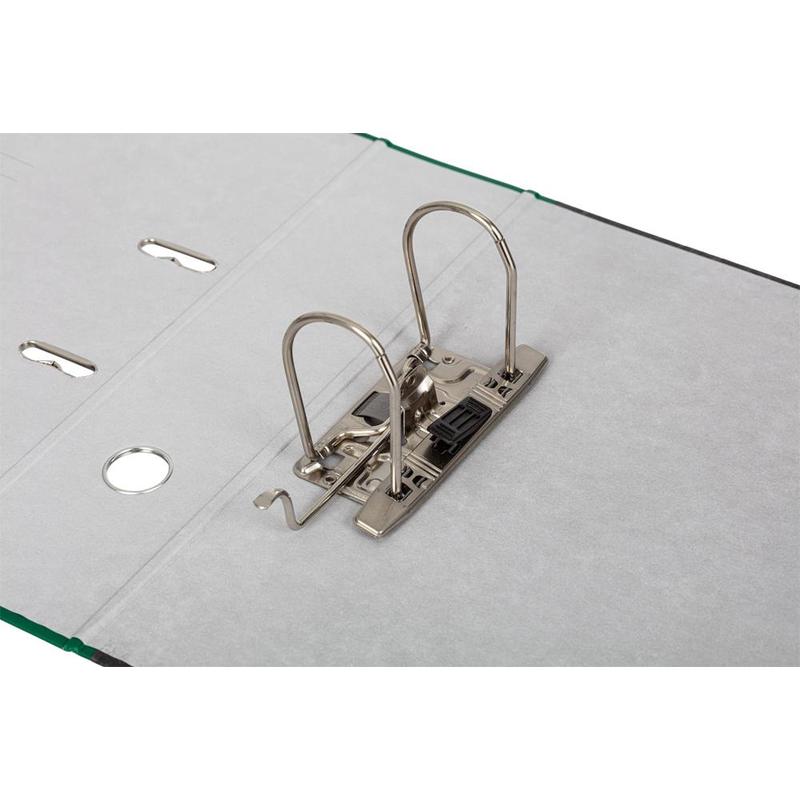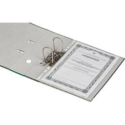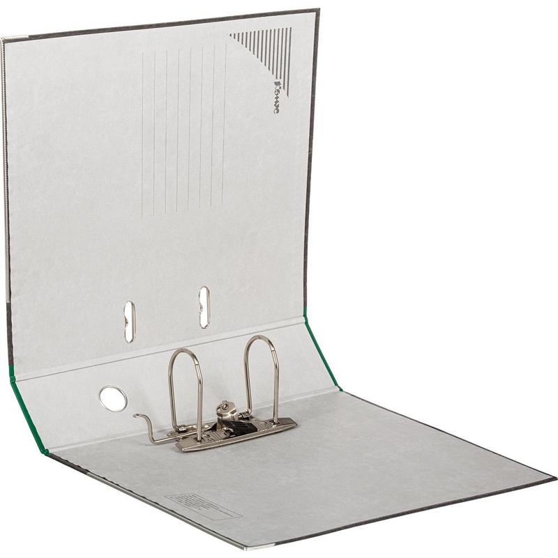 Папка-регистратор Мрамор с арочным механизмом изготовлена из плотного картона. Внешняя сторона покрыта бумагой «под мрамор», производства Великобритании, внутренняя сторона бумагой, корешок бумвинил зеленого цвета. Формат А4+. На корешке есть кольцо для удобного захвата. Арочный механизм произведен в Чехии. Папка регистратор вмещает до 600 листов стандартной плотности.