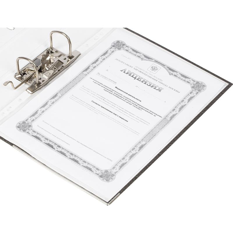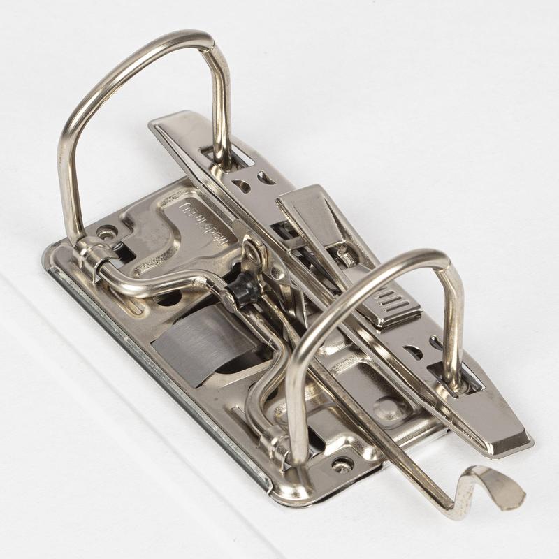 Папка-регистратор изготовлена из плотного картона. Внешняя и внутренняя стороны покрыты бумагой. Арочный механизм произведен в Чехии. Корешок шириной 50 мм — бумажный. Имеет защиту по нижнему краю. Формат — А4. Поставляется в разборном виде, в упаковке 10 штук.
