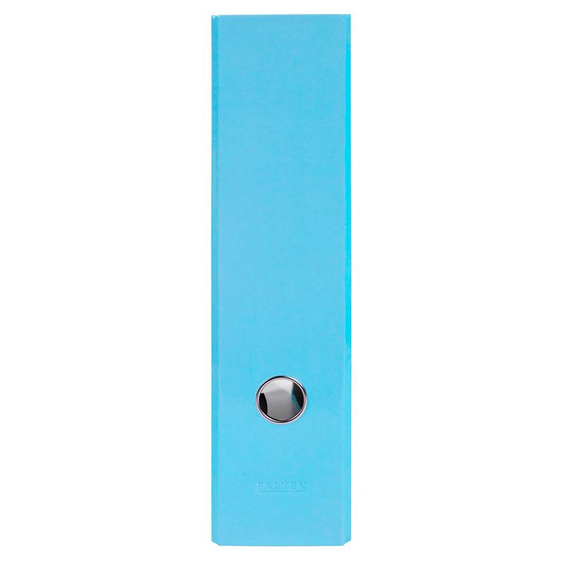 Папка-регистратор изготовлена из глянцевого картона формата A4. Цвет — голубой. Ширина корешка — 80 мм. Вмещает около 760 листов стандартной плотности. Страна происхождения — Германия.