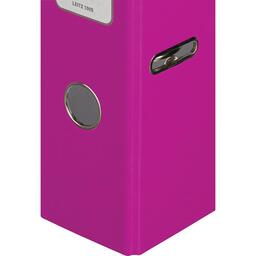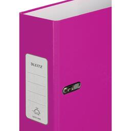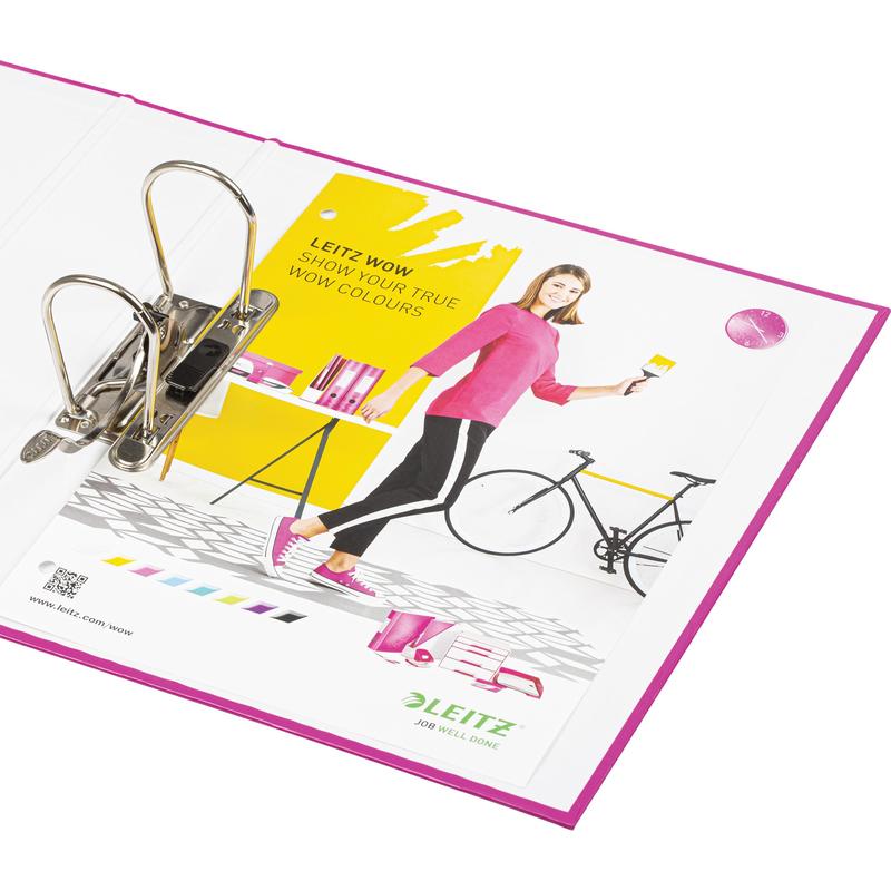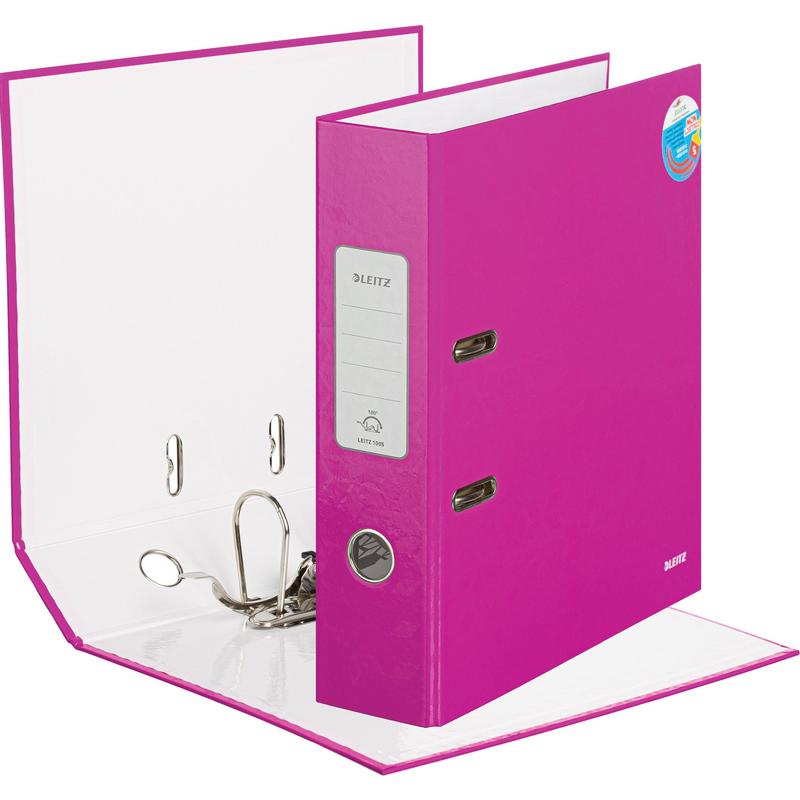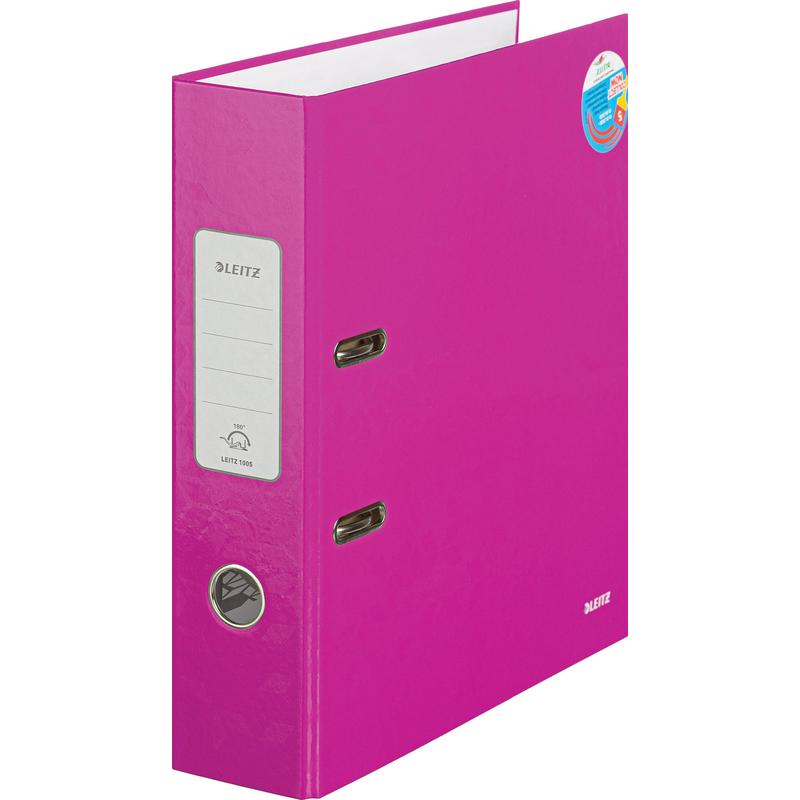 Папка-регистратор с арочным механизмом Leitz WOW формата А4 выполнена в розовом цвете. Картон с ламинированной глянцевой поверхностью придает папке сияющий, привлекательный вид. На корешке шириной 80 мм — стильная наклейка для маркировки. — Уникальный механизм с раскрытием рычага на 180 градусов: раскрытие на 50% шире, заполнение на 20% быстрее — Отверстие-захват и прорези на лицевой обложке для удобства в обращении — Вместимость: до 480 листов А4 стандартной плотности (80 г/кв.м) — 5 лет гарантии на механизм. Диаметр кольца — 2,5 мм. Толщина картона — 2,4 мм.