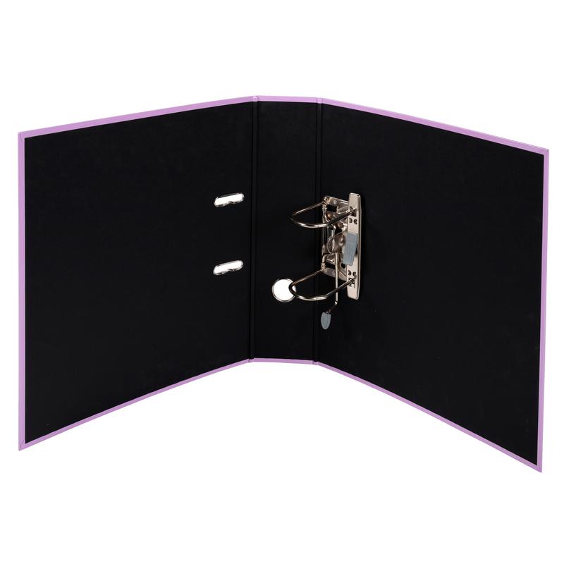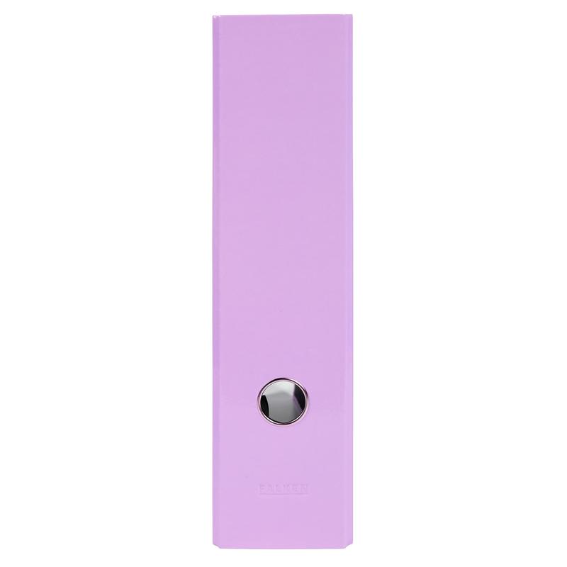 Папка-регистратор изготовлена из глянцевого картона формата A4. Цвет — фиолетовый. Ширина корешка — 80 мм. Вмещает около 760 листов стандартной плотности. Страна происхождения — Германия.