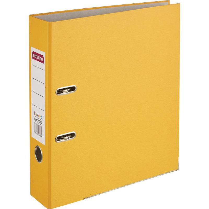 Папка-регистратор с арочным механизмом Attache формата А4 изготовлена из плотного картона, покрытого прочной бумагой оранжевого цвета. Позволяет хранить большое количество документов. Механизм подшивания — металлический арочный, произведен в Чехии. Нижние края папки защищены металлическим кантом. На корешке шириной 75 мм есть отверстие для удобного захвата и наклеенная этикетка. Папка-регистратор Attache вмещает до480 листов стандартной плотности.