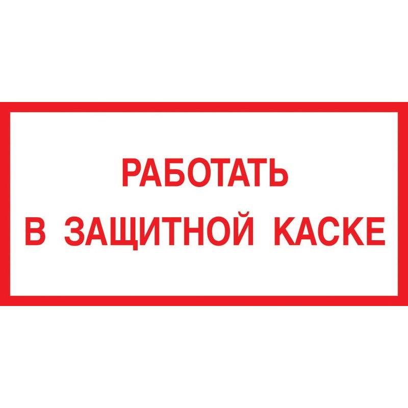 Вспомогательный знак (табличка) «Работать в защитной каске». Код знака: V4. Знак изготовлен из пластика, отверстия под подвес и клеевой слой отсутствуют. Используется для информирования о необходимости работать в защитной каске. Формат: 150×300 мм.