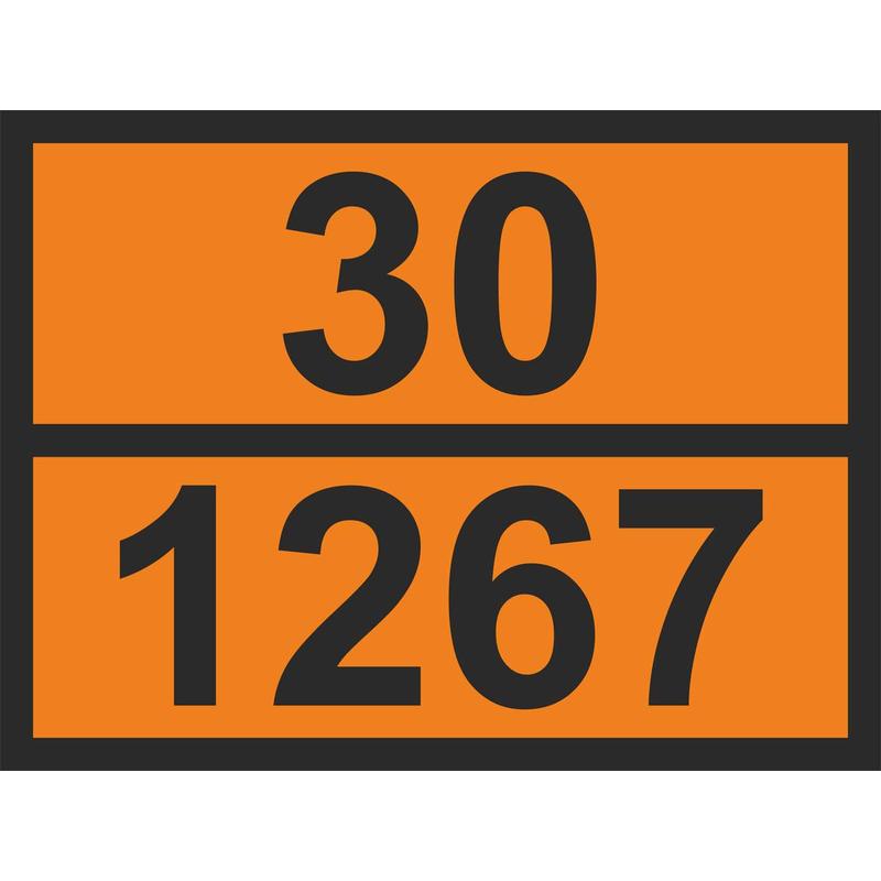 Знак безопасности «Знак (ООН) „30/1267“ Нефть сырая». Код знака: О12. Знак изготовлен из самоклеящейся полипропиленовой пленки, которая имеет стойкость к абразивным и нефтесодержащим веществам. Используют для маркировки транспортных средств, контейнеров, цистерн. Формат: 300×400 мм.