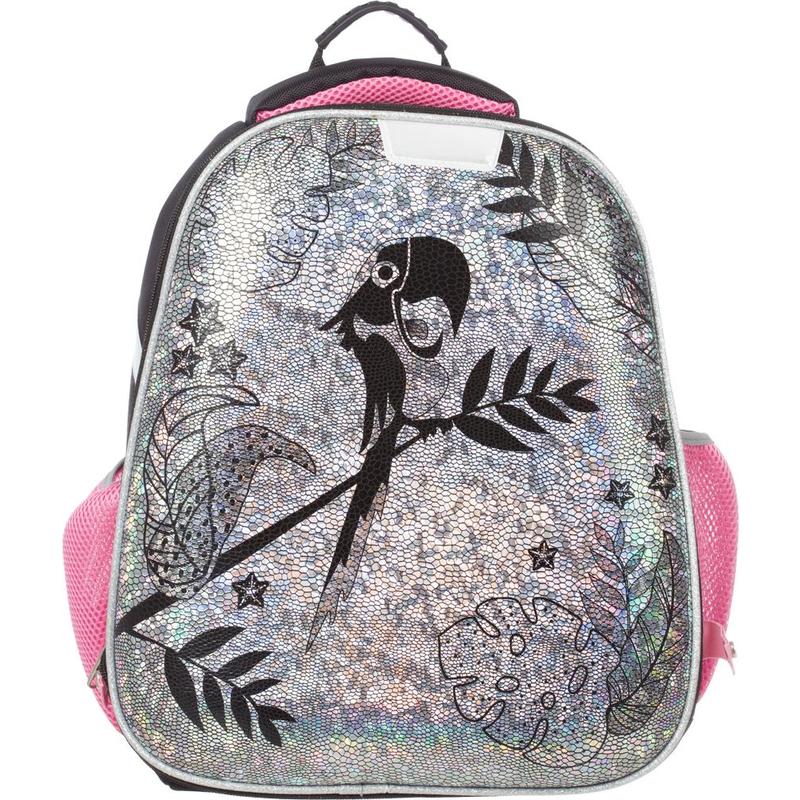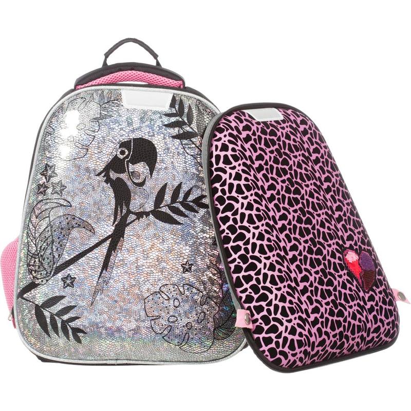 Инновационный анатомический ранец для девочки с двумя съемными крышками с дизайном. Крышка ранца на молнии по периметру отстегивается и меняется на другую. Прочная конструкция ранца надежно защищает его содержимое за счет плотного формованного материала. Жесткая спинка с мягкими анатомическими вставками с поддержкой в области поясницы. Лямки имеют систему регулировки по росту ребенка, что позволяет добиться наиболее комфортного расположения ранца на спине. Ранец оснащен двумя ручками: одна узкая, чтобы вешать на парту, вторая широкая и мягкая, чтобы удобно носить в руке. Плотное, устойчивое дно на ножках. Ранец имеет два основных отдела на молнии. В первом отделении — сетчатый карман. Во втором гибкая перегородка, предназначенная для удобного хранения книг и тетрадей. Также на ранце по бокам расположены сетчатые карманы для мелких принадлежностей. Светоотражающие элементы для дополнительной безопасности ребенка на лицевой стороне, боковых частях ранца, на лямках. Размер: 370/310/180 мм. Особенности: сменная крышка, 1 крышка — ткань с голографическим эффектом, 2 крышка — экокожа с флоком.
