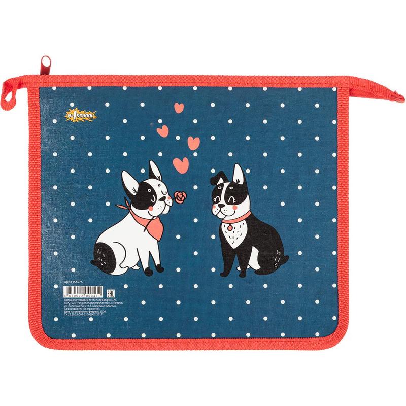 Папка для тетрадей № 1 School Собачки формата А5 на молнии. Папка выполнена из пластика и ламинированного картона.