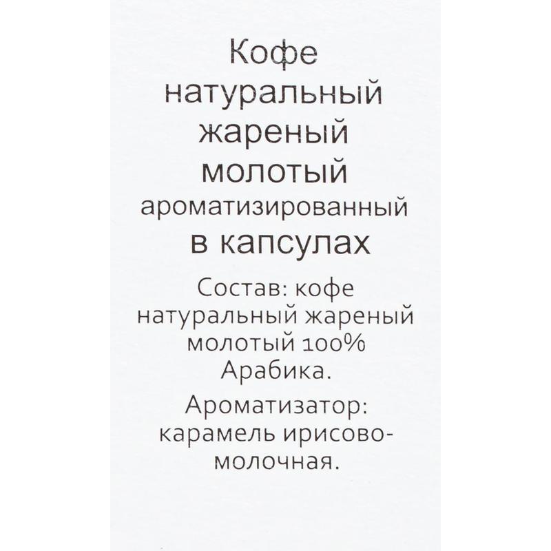 Капсулы для кофемашин Nespresso «Blues Капучино-карамель» (10 штук) — напиток для романтиков и всех, кто предпочитает нежные, сливочно-карамельные варианты кофейных напитков. Этот кофе разбавит будни необычным вкусом, даря заряд энергии, позитива и хорошего настроения.Многие любители бодрящего напитка давно оценили удобство и простоту приготовления кофе в капсулах. Ведь для того, чтобы в чашке оказался ароматный капучино, достаточно вставить капсулу в кофемашину Nespresso и нажать на кнопку.Капсулы «Blues Капучино-карамель» идеальны для употребления в домашних, офисных и прочих условиях. Порция напитка всегда найдет своих поклонников, будь то гости, клиенты или друзья.Герметичные капсулы защищают кофе от света и влаги и оснащены портафильтрами для дополнительной защиты от попадания содержимого в кофемашину, а также для равномерного распределения давления воды, чтобы максимально тонко раскрыть вкус и аромат напитка.Состав: кофе натуральный жареный молотый 100% арабика, ароматизатор «карамель ирисово-молочная».Степень обжарки: средняя.Вид кофе: капсульный.Способ приготовления: приготовить в капсульной кофемашине типа Nespresso.Вес: 55 г, 10 капсул.Тип упаковки: картонная коробка.Условия хранения: хранить в сухом прохладном месте.Страна производства: Россия.