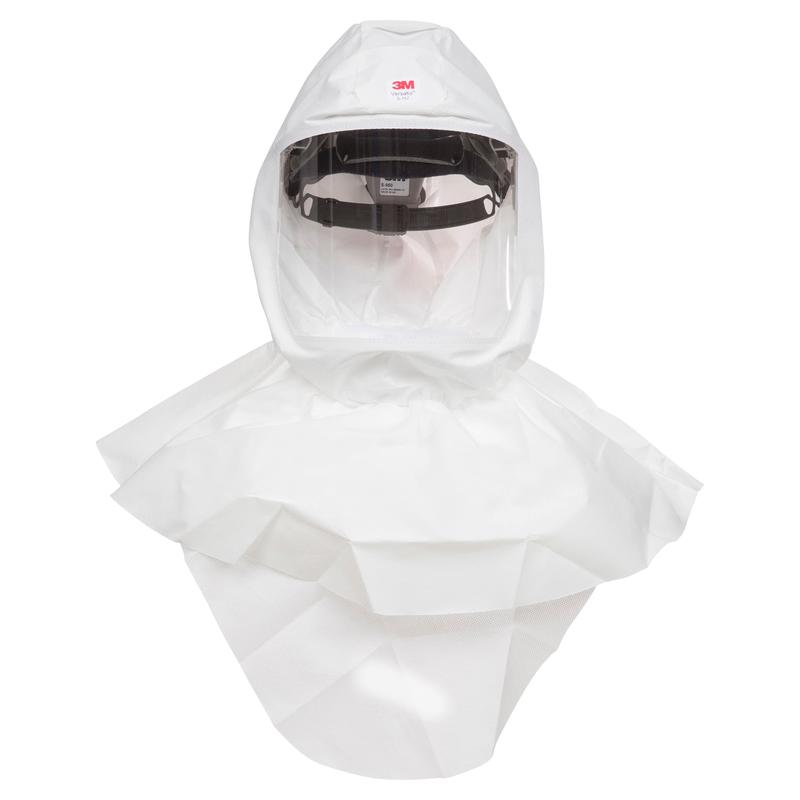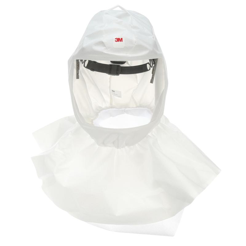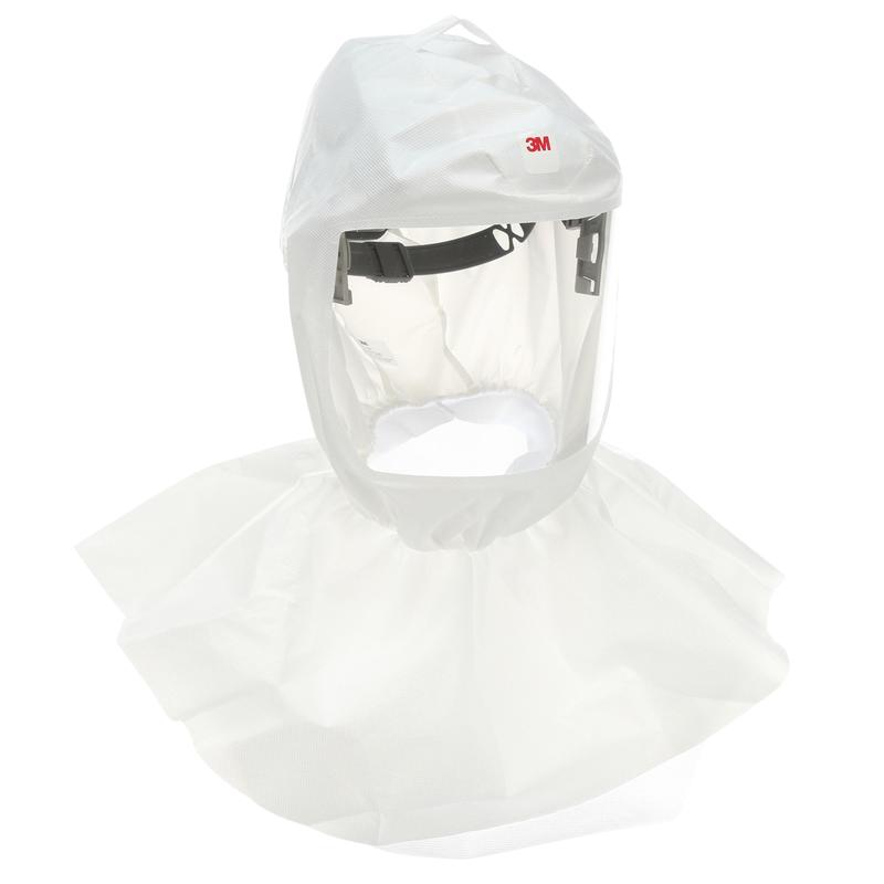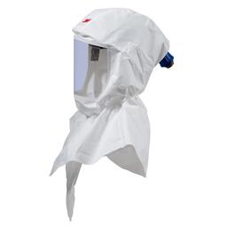 3М Versaflo S-757 - капюшон в сборе с оголовьем многоразового использования. Область применения: покараска, фармацевтика, химическая промышленность Обеспечивает покрытие головы, шеи и плеч, защиту лица и глаз в дополнение к обеспечению защиты органов дыхания при использовании вместе с системой подачи очищенного воздуха. Размер защитного экрана: 200x300 мм. Вес: 315 г.