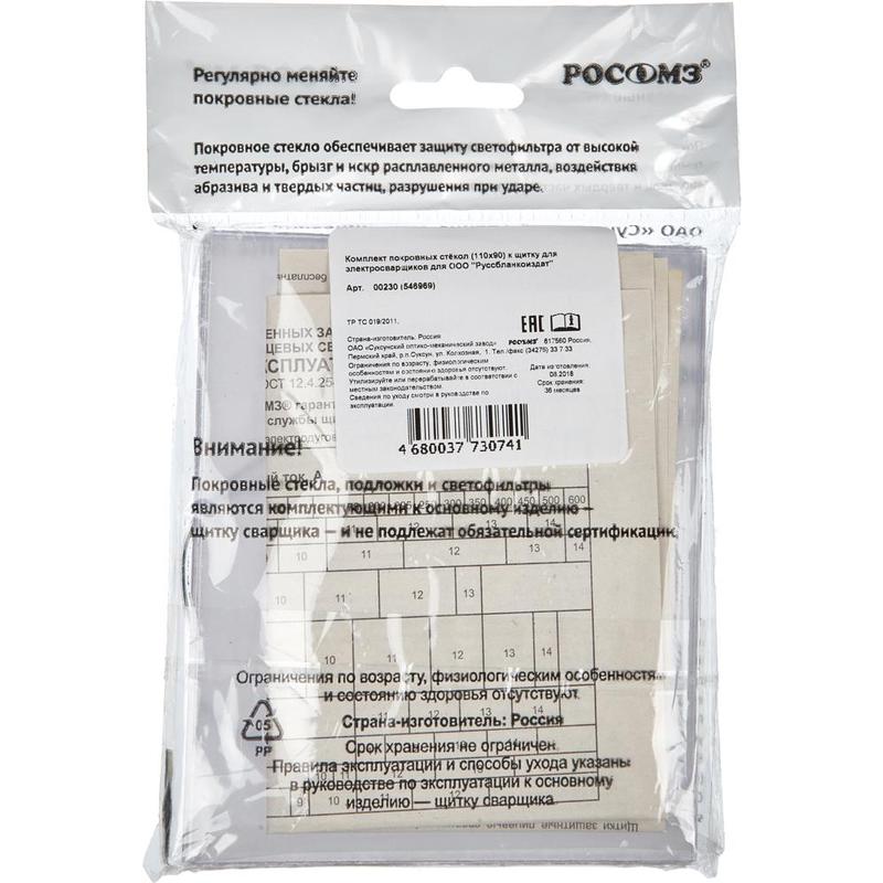 Стекла для маски сварщика наружные РОСОМЗ 110х90мм (10 штук в упаковке, артикул производителя 00230)