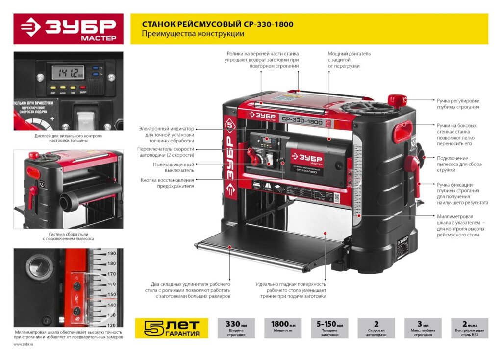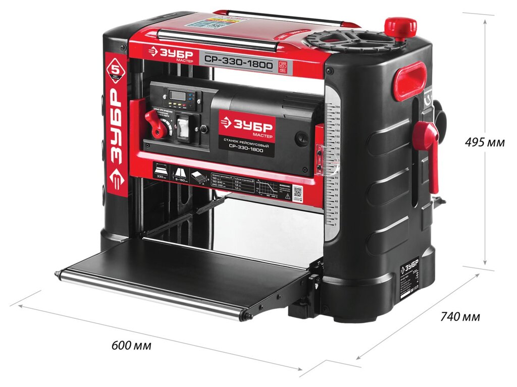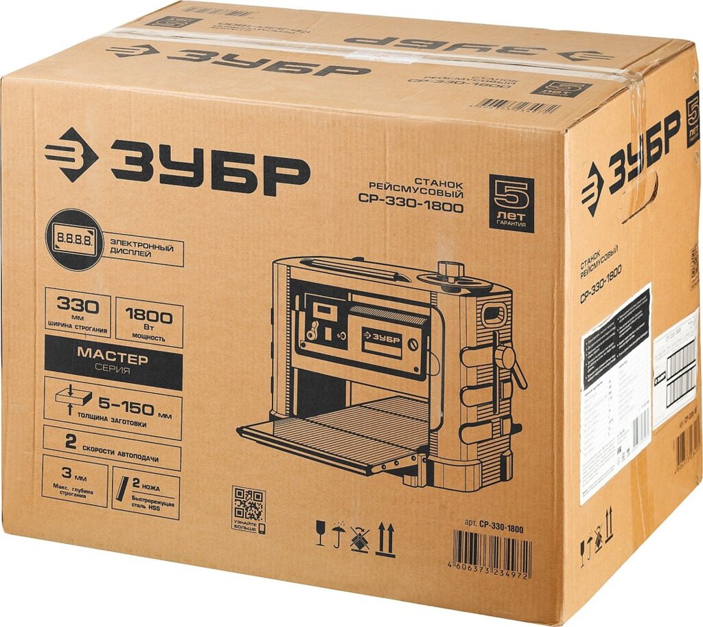 Рейсмусовый станок, ЗУБР СР-330-1800, ширина строгания 330мм, толщина заготовки до 150мм, 2 ножа, 9000 об/мин, 1800Вт, 2