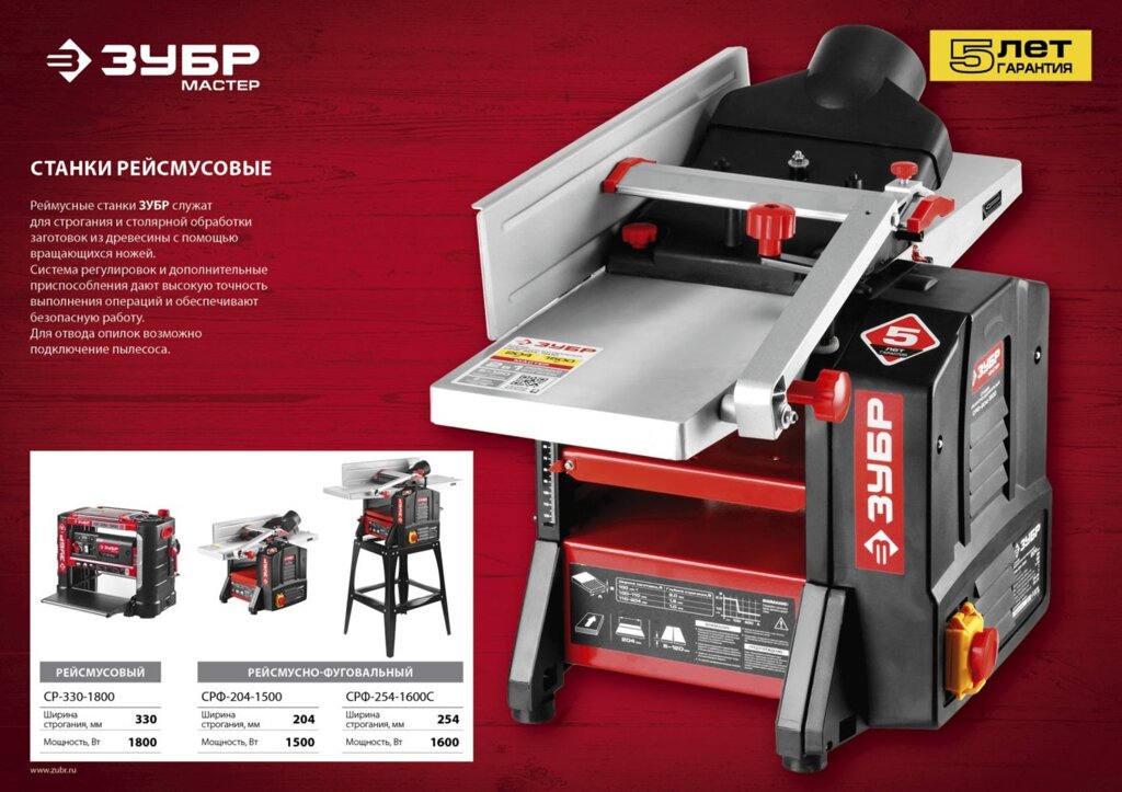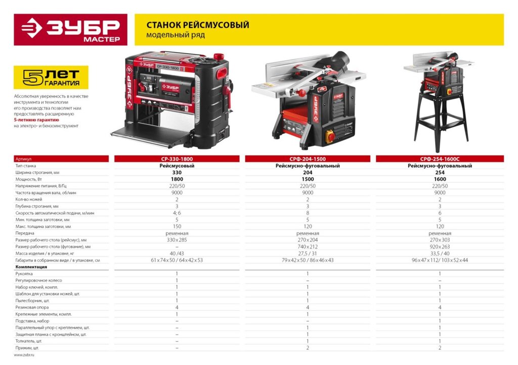 Название по накладнойРейсмусовый станок, ЗУБР СР-330-1800, ширина строгания 330мм, толщина заготовки до 150мм, 2 ножа, 9000 об/мин, 1800Вт, 2 скорости подачи: 4 и 6м/мин