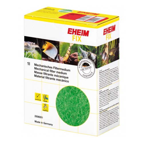 EHEIM FIX Наполнитель предварительной очистки/ тонкая очистка многократного использования.Грубый, механически рабочий материал используется там, где вода вступает в процесс фильтрации. Вода завихряется и крупные частицы грязи оседают. Затем вода продолжает свой путь через другие слои.Предназначение:Фильтрирующий материал для предварительной и тонкой очистки воды, а также в качестве разделительного слоя между механической и биологической фильтрующей среды.EHEIM FIX - наполнитель для префильтрации и тонкой фильтрации - работает в качестве разделяющего слоя между механическим и биологическим наполнителями.Этот специально сделанный фильтрующий материал используется в фильтре после наполнителя EHEIM MECH или MECHpro. На этом этапе отсеиваются большие частицы грязи, таким образом они не попадают дальше, в наполнители с биологической фильтрацией.Мы также рекомендуем пользоваться губками грубой очистки EHEIM для достижения примерно такого же результата.• Наполнитель для префильтрации и тонкой фильтрации• Идеален в качестве прослойки между механическим и биологическим наполнителями• Легко чистить• Многоразового использования• Подходит для пресной и морской водыОбъём: 5л