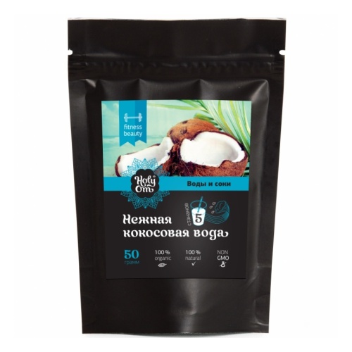 Кокосовая вода натуральная в порошке (Instant Coconut Water Powder) 50 г 100% натуральная кокосовая вода в порошке - освежающий полезный напиток для людей всех возрастов. Природный источник питания, хорошего самочувствия и красоты. Нежная кокосовая вода в порошке – отличная экологическая альтернатива консервированной кокосовой воде, которая необходима для активного здорового образа жизни. Наша кокосовая вода в порошке очень удобна и позволяет носить ее с собой, занимая очень мало места и получать свежую кокосовую воду в любом месте – только разбавив водой. Наша кокосовая вода – самая вкусная, освежающая и питательная. Она полна минералами и электролитами – калием, кальцием, натрием, магнием и фосфором, что делает ее идеальным энергетическим напитком. В одном пакете содержится 5 стаканов кокосовой воды! * Идеально подходит для людей, страдающих от усталости, стресса в повседневной жизни.