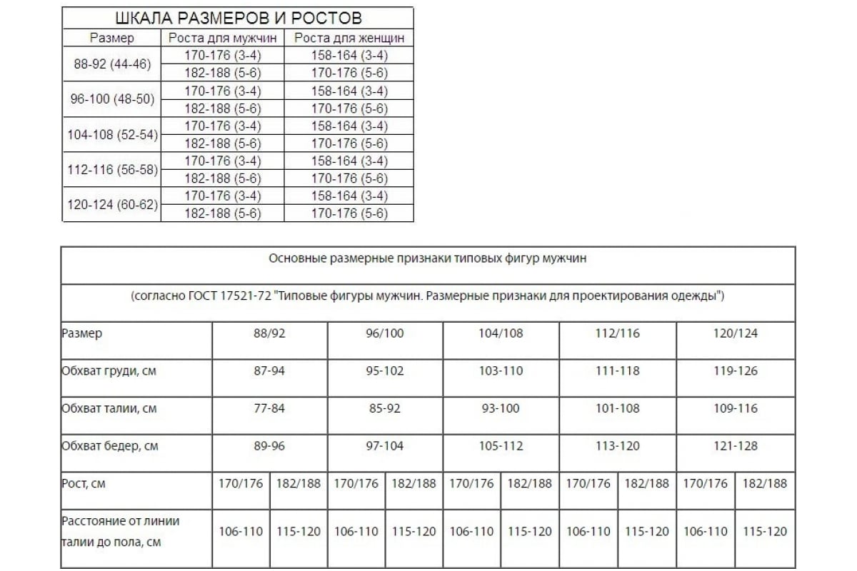 - Рост, см 170-176